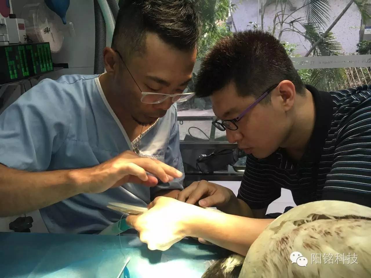7月10日,動(dòng)物醫(yī)院正式開始了手術(shù)。在“立立”接受麻醉,進(jìn)入昏迷后,醫(yī)生們按照事先計(jì)劃好的手術(shù)方案,在30分鐘內(nèi)就完成了整個(gè)義喙的安裝。